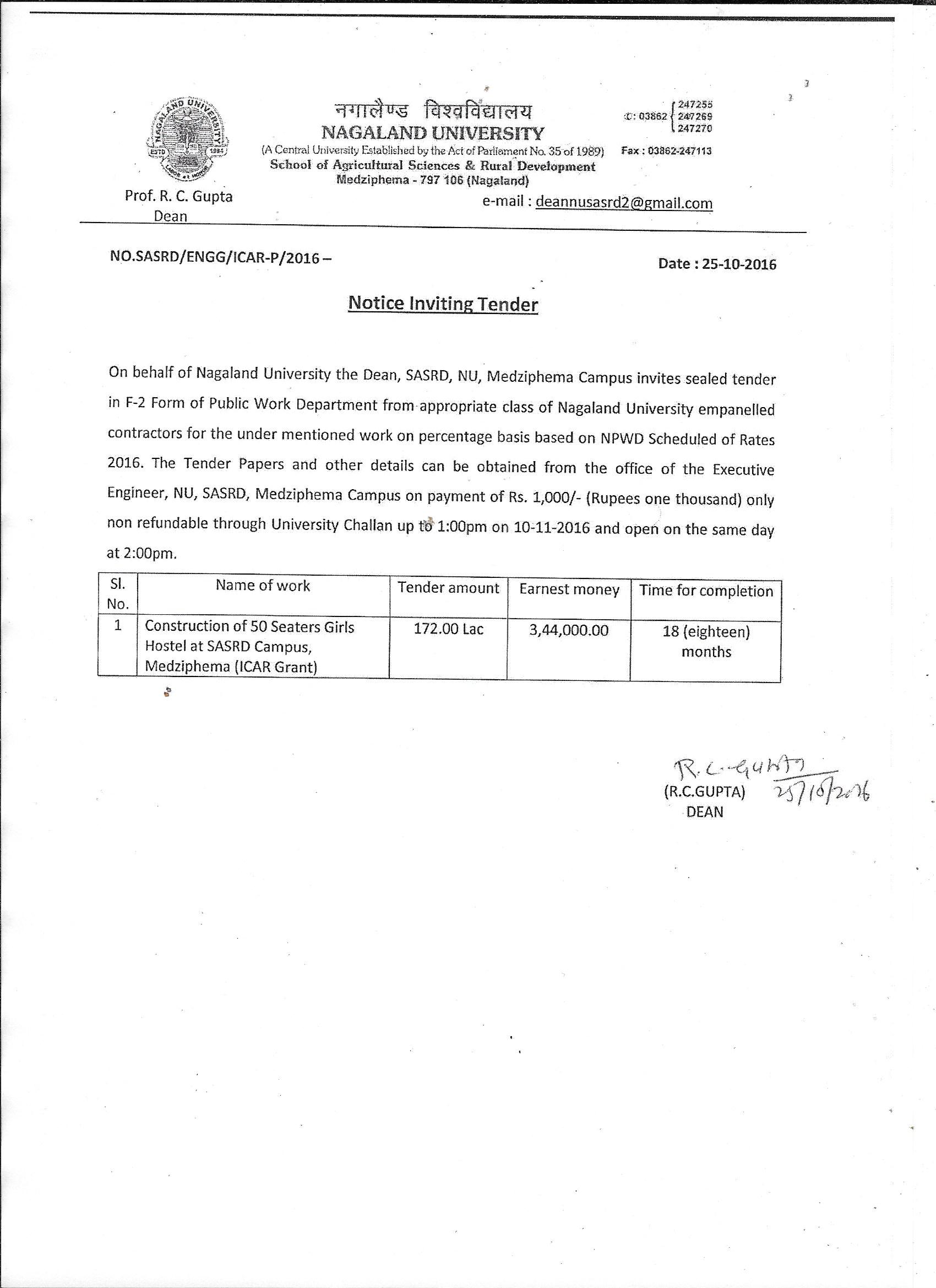 NIT - CO 50 seater Girls hostel at NU, Medziphema campus (ICAR Grant)